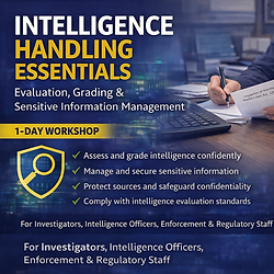 This practical one-day workshop is designed for investigators, enforcement officers, intelligence staff and regulatory practitioners responsible for receiving, recording and using intelligence. The course provides a clear understanding of how to handle intelligence lawfully and effectively, apply recognised evaluation and grading systems, and make informed decisions about reliability, credibility and risk. Learners will also explore the secure management of sensitive intelligence, including source protection, dissemination controls, record keeping, retention considerations and maintaining confidentiality. Emphasis is placed on turning raw information into usable intelligence products while ensuring compliance, accountability and operational integrity. By the end of the session, delegates will have greater confidence in evaluating intelligence, applying grading correctly, and managing sensitive information to current professional standards. Ideal For Investigators, Intelligence Officers, Trading Standards, Local Authority Enforcement Teams, Regulatory Services, Fraud Teams and managers overseeing intelligence processes. Delivered by an expert trainer with extensive operational experience as an Intelligence Manager, who has led Intelligence departments and teams for over 20 years. Learners benefit from practical insight, current best practice, and real-world understanding of Intelligence handling and compliance. Ideal For Investigators, Enforcement Officers, Trading Standards, Regulatory Services, Intelligence Practitioners, Local Authority Officers and staff involved in handling and managing Intelligence Course Dates – Thursday 9th July 2026 – 0930am x 4.30pm Venue - Birmingham City Centre Cost £199 per delegate Please follow the link https://www.bdgtrainingconsultancy.co.uk/book-online to book a place on a course. Payment can be made via the website by PayPal/debit/credit card or select the Pay in person option if you are booking on behalf of your organisation. This will allow and invoice to be raised to obtain a Purchase order number but your place will still be secured on the course (subject to payment) Further enquiries can be made via info@bdgtrainingconsultancy.co.uk for further information.
